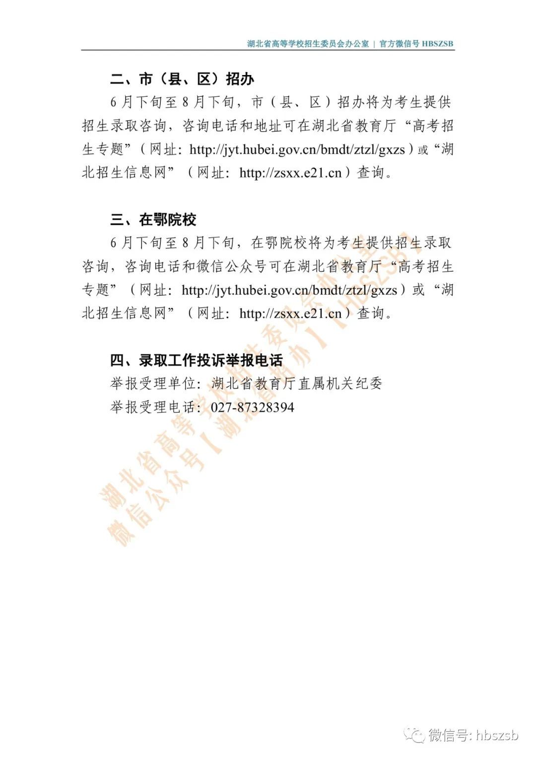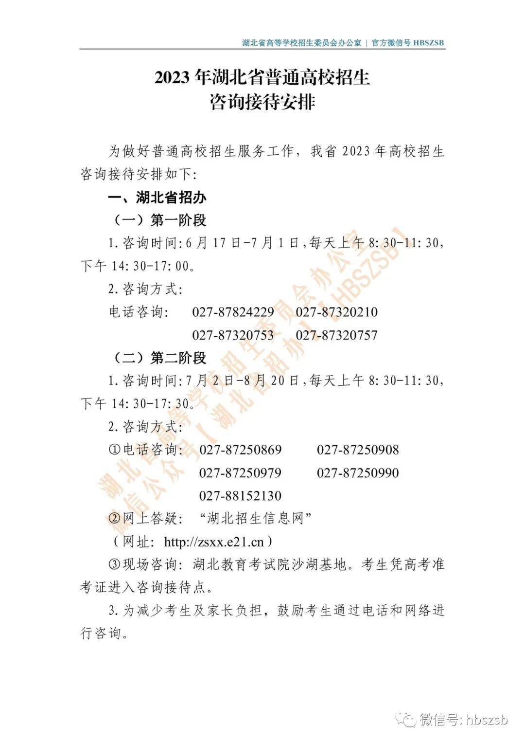 2023年湖北省普通高校招生咨询接待安排