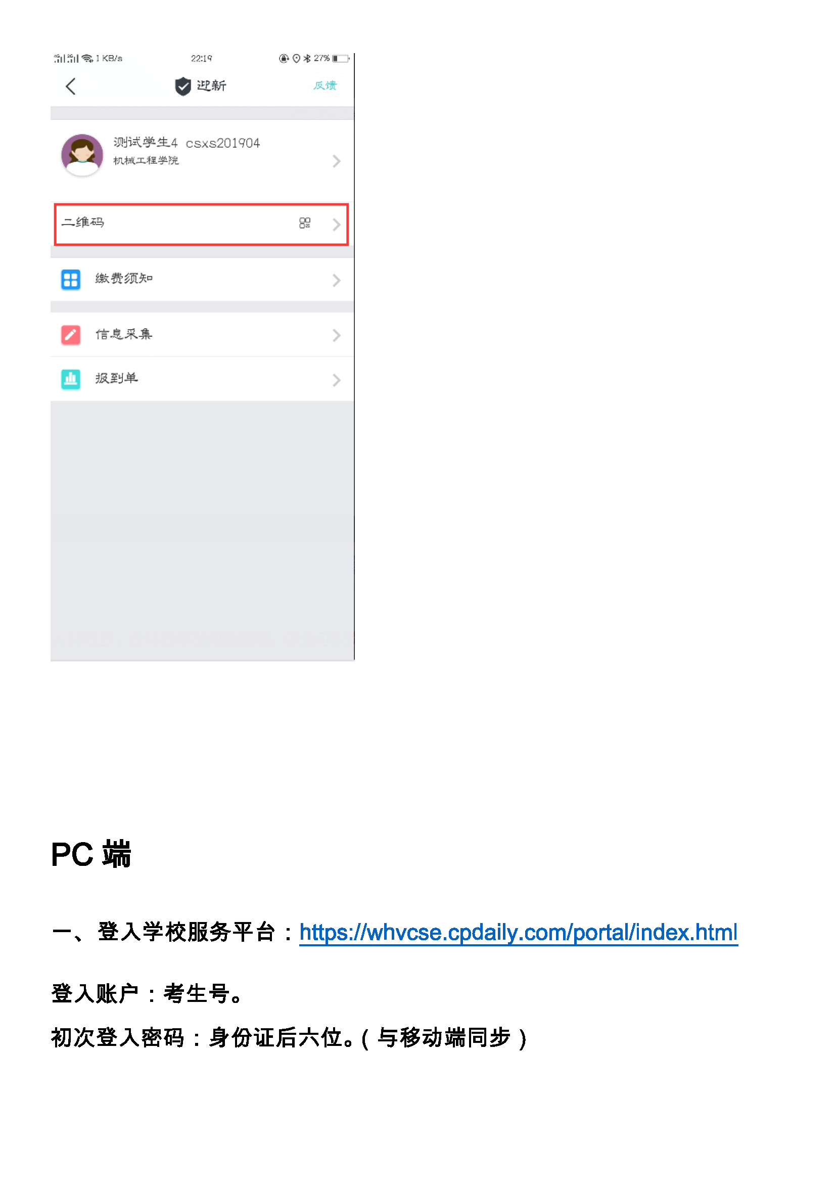2019年武汉软件工程职业学院迎新学生端操作手册
